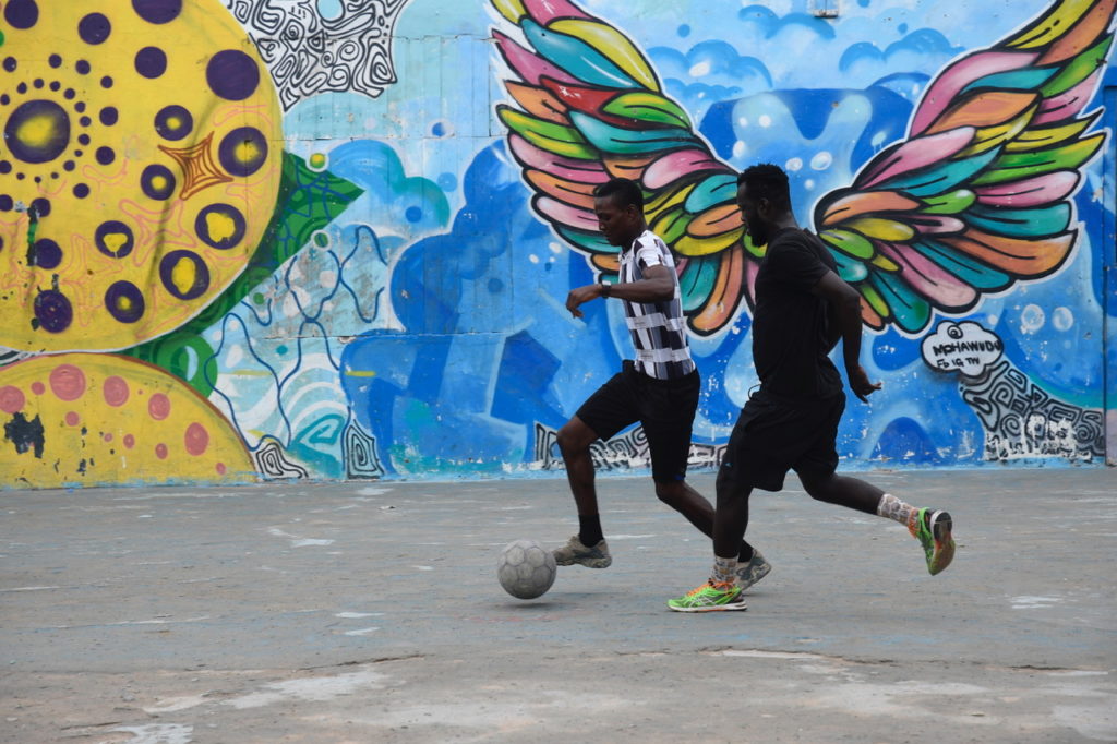 by Andrew Califf Jamestown is a vibrant, bustling community in Ghana, and the art scene there is as energetic as the young men who play soccer in the colorfully decorated pitch. The pitch is between relaxed Jamestown Cafe, a creative center for artists, and the imposing Ussher Fort, originally a Dutch stronghold, on High Street. … Continue reading A Lively Soccer Pitch in Jamestown